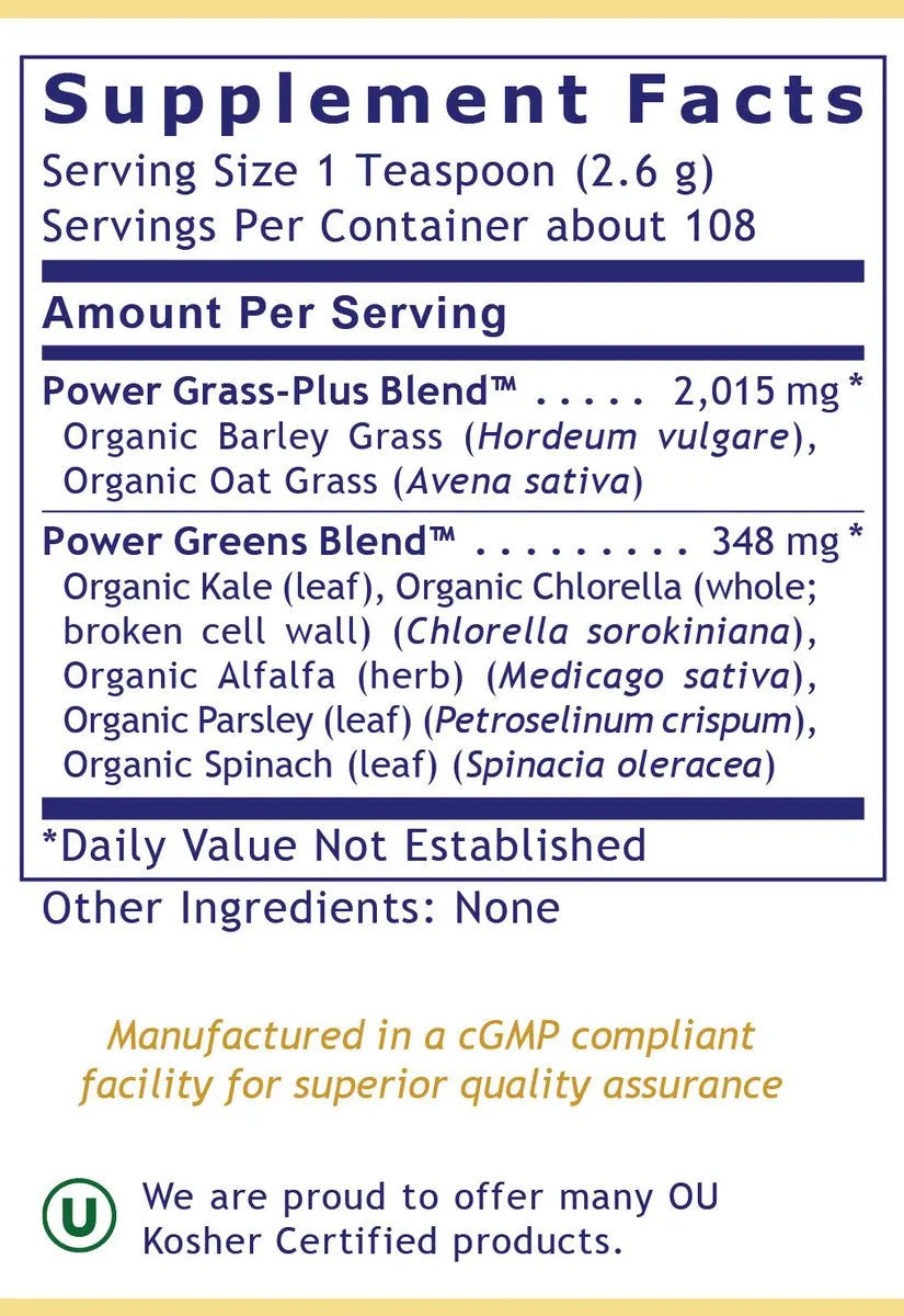 - Complete, super nutrition greens with Power Grass-Plus Blend and Power Greens Blend